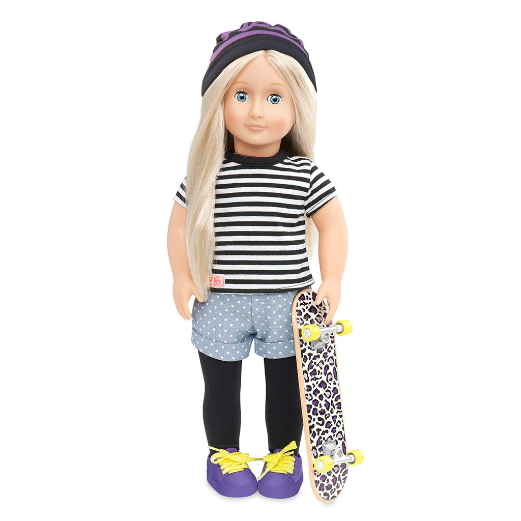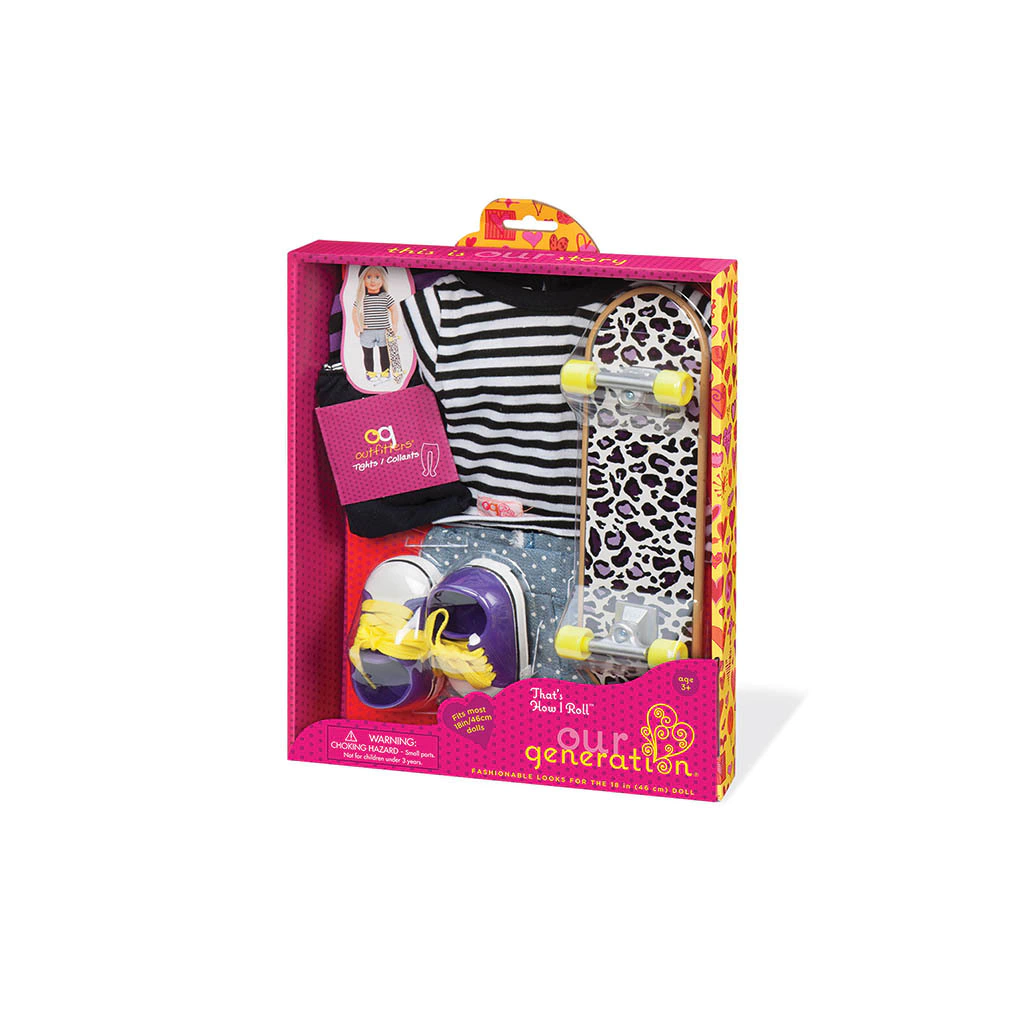Deja que tu muñeca Our Generation viaje en la dirección correcta con este adorable traje de skater.